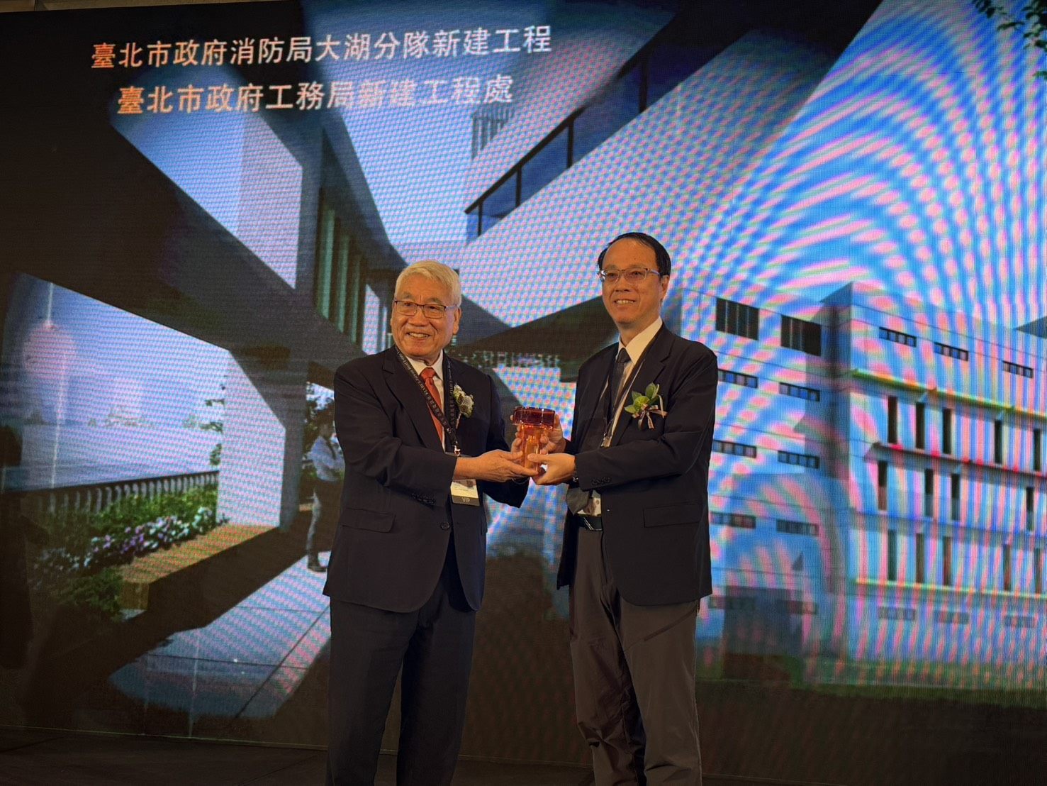 臺北市政府工務局新建工程處辦理「消防局大湖分隊新建工程」及「南港立體連通平臺工程」,分別榮獲2025國家卓越建設獎最佳規劃設計類及最佳施工品質類肯定,頒獎典禮由中華民國不動產協進會於114年7月29日下午4時,假台北君悅酒店舉辦。 新工處表示,「消防局大湖分隊新建工程」位於臺北市內湖區大湖公園捷運站2號出口側,未來將興建地下1樓、地上5樓建物,1樓設置值班室、備勤室及救災車輛車庫,2至5樓設置分隊辦公室、寢室、健身房及訓練平臺等空間,以提供任務繁重的消防員更優質之工作環境空間。整體建築外觀採沉穩內斂的灰色系為主,並搭配深色及淺色的綠色格柵,並與消防三原色(黃色、紅色及白色)相互搭配,象徵消防局救災及救護的精神意象。主建物外區域採最低限度開發,保留原樹種林相,並新植喬木加強坡面造林,構築綠色建築環境。另基地臨大湖公園捷運站成功路五段側,未來將退縮建置步行及綠帶空間,落實友善鄰里設施,打造北市完整救災系統及友善便民服務環境。 新工處說明,北市府108年8月通過「臺北市南港區人行立體連通系統都市設計管制要點」,以南港車站為核心,串聯3處捷運站近3.56公里之立體人行系統,將打造南港成為繼信義計畫區之後,另一個擁有人行立體連通系統的行政區。本次獲獎的「南港立體連通平臺及其附屬綠化設施統包工程」即為該計畫之一環,位於市民大道八段與忠孝東路七段265巷西南基地,透過南港車站西側立體連通系統核心平臺之建置,可串聯人行立體連通系統與地面層活動,連通平臺分為鋼拱橋及大平臺兩部分,主橋北連世界明珠建案二樓廊道,南接公園大平臺,副橋從主橋側邊往東接南港車站BOT大樓,橋體長約95公尺,高7.5公尺,寬4.5公尺,拱橋以曲線的型態,增加都市景觀層次,呼應南港區建築色彩,整體融合地區特性,大平臺與地景相連,將人流帶至北流公園地坪,下方的半戶外空間與忠孝東路七段街角廣場相連,平時可做為風雨操場、市集或節慶慶典空間,必要時也可支援北流大型活動,增進地方商圈繁華。
